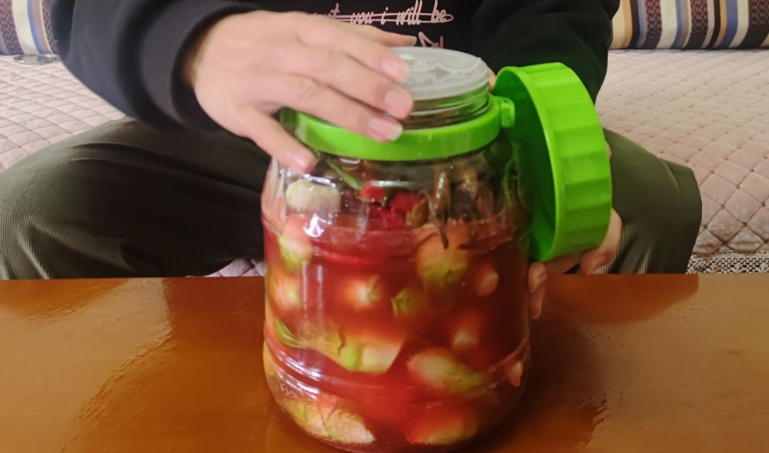 活動由塔里木大學食品科學與工程學院“探尋家鄉回憶,傳承特色文化”宣講團主辦,團隊成員張釗充分發揮本地人優勢,向群眾展示了四川泡菜的詳細制作過程。
