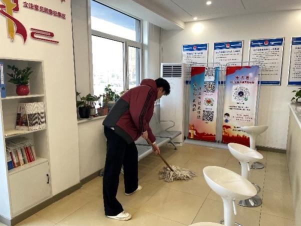 圖為實踐隊在打掃司法所。中國青年網通訊員王昊男提供