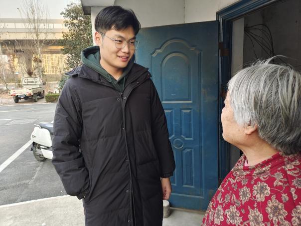 圖為隊員周航正參訪社區居民。 中國青年網通訊員 周航正 供圖