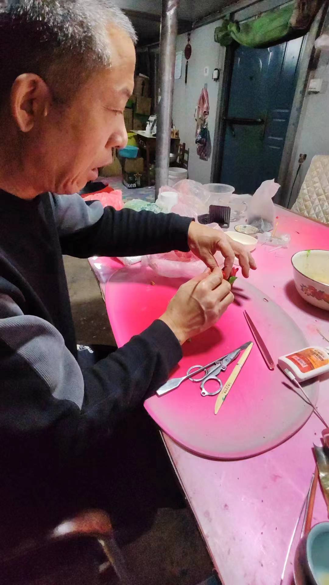 我們來到遼寧大連莊河的蘭店鄉陳老先生家中,此刻他正在為即將到來的元宵佳節制作屬相燈,莊河的民間更通常將其稱之為“徐兒” 。