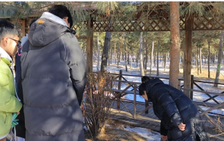 交談過后,實(shí)踐團(tuán)來到了萬畝松林,登上七層瞭望塔,隆隆冬日“青松挺且直”。隨后,講解員帶領(lǐng)大家深入松林,為大家介紹了如何根據(jù)樹干判斷樟子松的年齡,了解松樹習(xí)性,并學(xué)習(xí)如何甄別病樹,大家切實(shí)體會(huì)到了護(hù)林工作的艱辛。