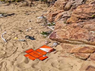 調研初期,團隊成員于1月25日抵達怡海灣水口廟附近的沙灘。這片沙灘的特點是靠近入海口、植被覆蓋少、地形平坦、顆粒細膩,且靠近陸地的區域植被茂盛。由于漲潮,沙灘的入口變得狹窄,該時段的人流量也相對較少。整體上,大部分沙灘看起來相當干凈,僅發現少量人為垃圾。然而,在植被覆蓋的區域,卻發現了大量的垃圾殘留,包括塑料瓶、玻璃罐、零食袋、冰糕棍、果皮、漁網、浮標、碎木塊和椰子殼等。