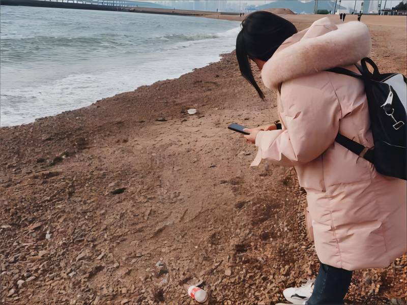 同時,團隊成員還采訪了海灘周邊居民和參與清理工作的志愿者(因受訪者不愿露面,本次采訪僅以文字形式記錄)。受訪者是一位冬泳愛好者,長期居住在大連,他表示自己經常來星海這片海域進行運動,對沙灘上的垃圾情況有一定了解。據他描述,沙灘整體較為干凈,垃圾問題并不嚴重。星海灣區域有組織定期清理沙灘,主要采用人工清理的方式,目前尚未使用機器替代。他認為,如果未來能夠實現機器代替人工清理沙灘,將極大地提高工作效率,并期待相關技術能夠得到廣泛應用。在采訪結束后,團隊成員在沙灘邊發現了一包已經打包好的垃圾,經過詢問得知,這些垃圾會在晚上統一運送至垃圾場,整個處理過程均由人工完成。