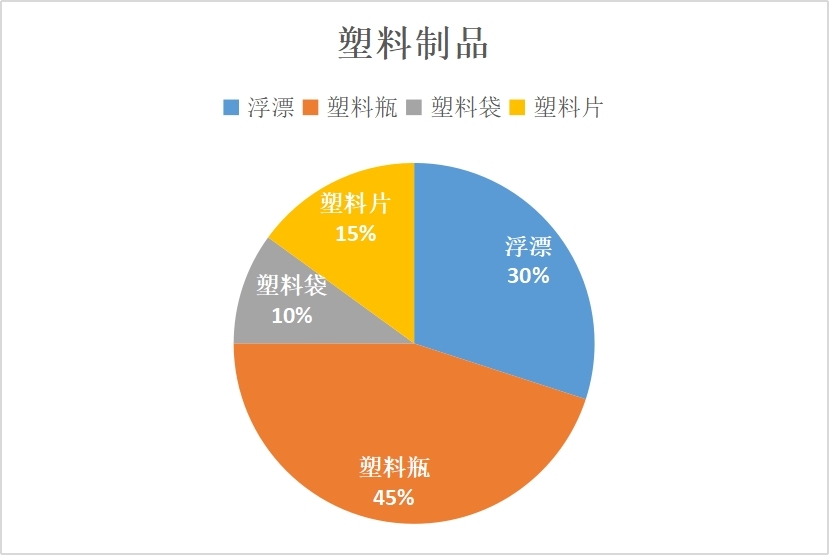 隨后,調研團成員轉至大連市大黑石海域進行實地調研。相較于星海廣場,該海域沙灘上的垃圾密度明顯增大,塑料制品占據主導地位,約占總量的90%。這些塑料垃圾包括塑料礦泉水瓶、塑料袋、塑料片以及浮漂等。此外,團隊成員還發現了一些較為陌生的垃圾類型,與海邊工作人員溝通得知,大黑石海域進行海參養殖,因此沙灘上的塑料片、大量塑料桶以及大量麻繩均是養殖過程中產生的廢棄物。具體垃圾統計如下: