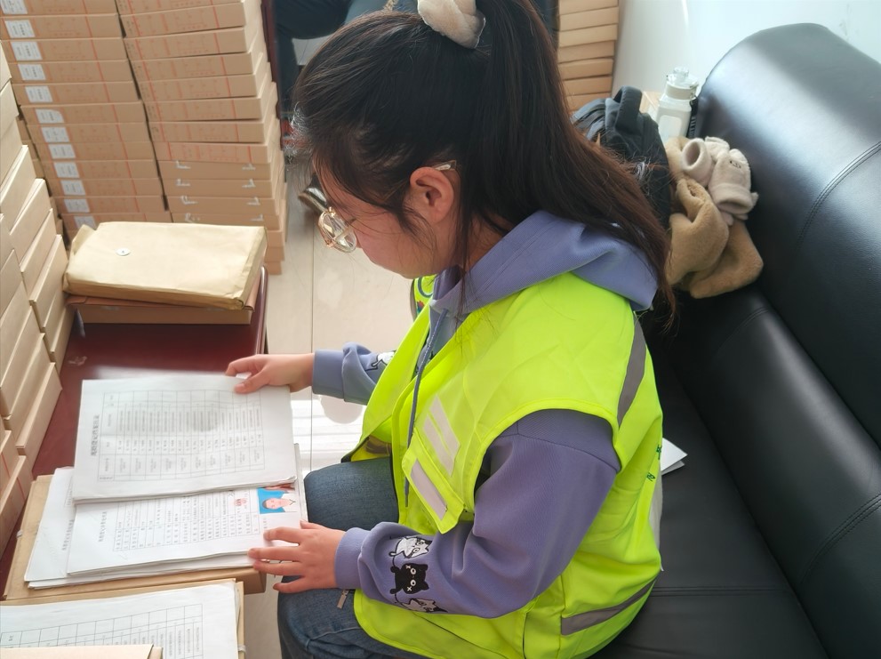 實踐成員舉旗合影為幫助實踐團順利完成此次實踐活動,實踐團成員參加了“青春興晉”大學生“返家鄉”寒假社會實踐動員會,熟知單位管理范圍和工作情況。在劉主任和熱心市民的幫助和配合下,實踐團成員迅速進入工作狀態。出于對群眾檔案正確性及真實性考慮,劉主任帶領實踐團成員開始核查往年檔案信息是否有誤,并在此次核對中對實踐團成員的細心和耐力進行考驗。