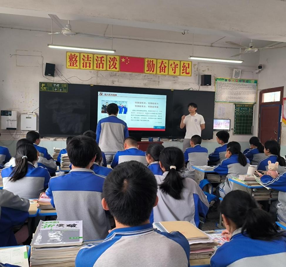 隨后,航空航天學院本科生康雨琳來到岑鞏三中9(18)班,為同學進行了一場題為《矢志不渝,筑夢星辰大海》的理論演講,講述了在幾代航天人接續奮斗下,取得的以“兩彈一星”、載人航天等為代表的輝煌成就,號召同學投身航天報國的偉大事業,演講結束后贏得了同學的陣陣掌聲。