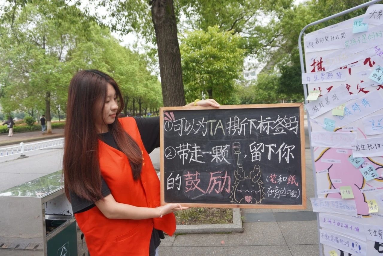 緊接著,志愿者們引導大家用溫暖的筆觸為山區女孩寫下一句句飽含深情和暖心的祝福語,一張張承載愛與希望的彩色便簽,化為衡師校園最靚麗的風景線,助力女孩們破繭成蝶,展翅高飛。