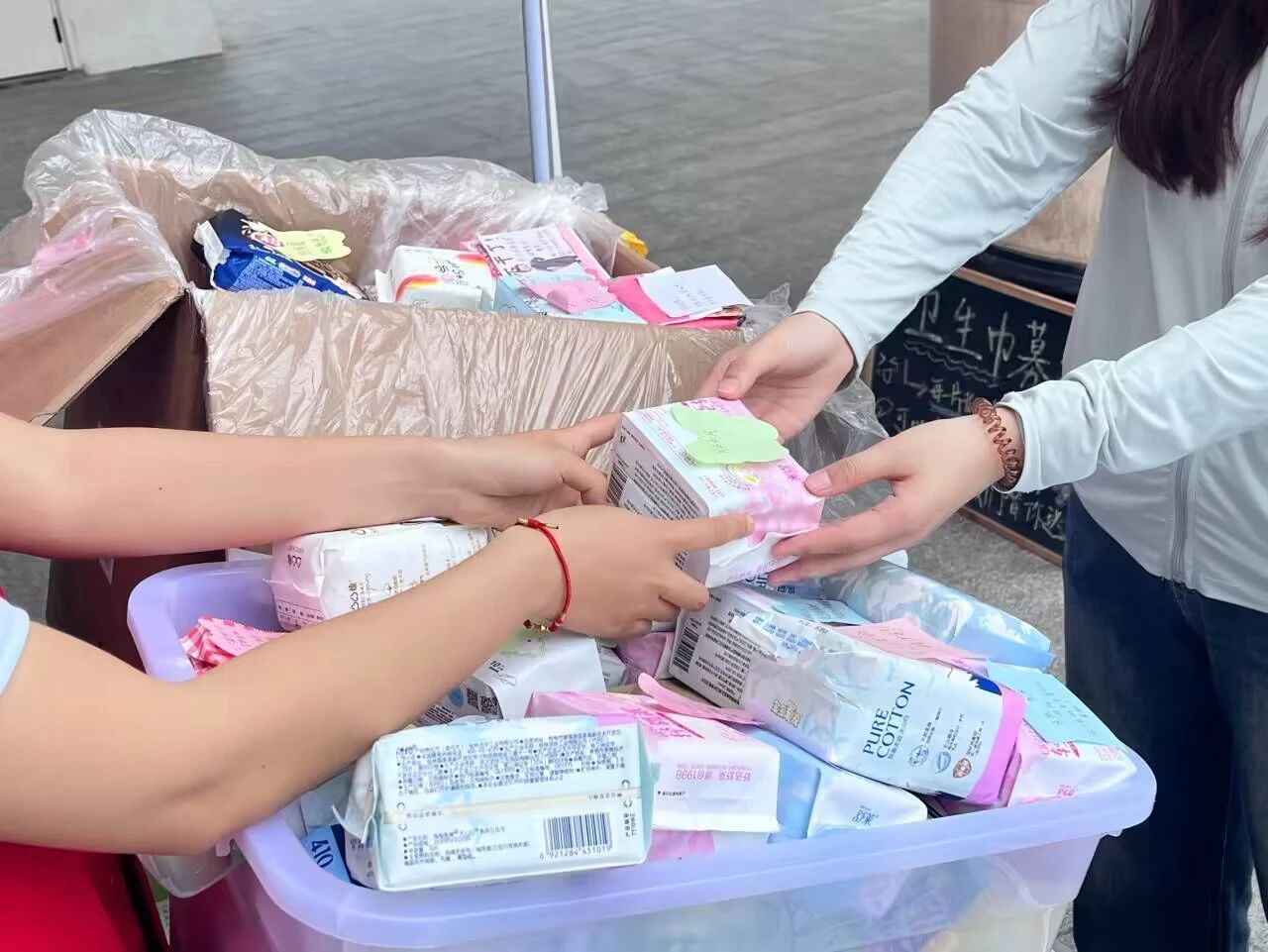 活動伊始,經過心理專業知識培訓的志愿者們熱情地向參加本次活動的愛心人士介紹活動意義,普及山區衛生巾緊缺的實際情況,并引導大家消除月經羞恥的錯誤觀念。活動現場各學院師生紛紛加入衛生巾捐贈活動,參互募捐的龐然文同學說:“這個活動非常有意義,不僅引導大家正視“月經”這一正常的生理現象,推動更多人關注女性健康,同時還為山區女孩健康成長賦能。”