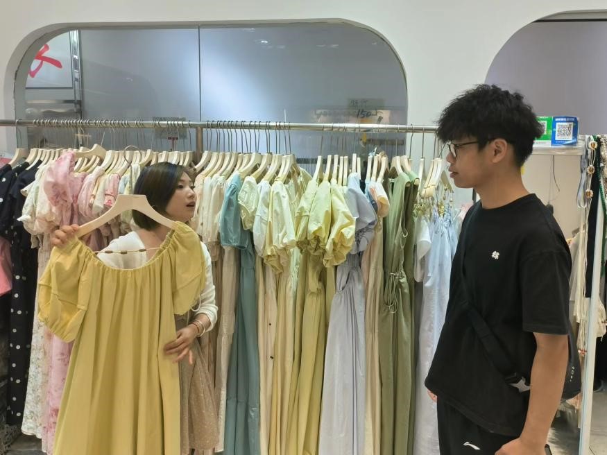 第三家我們來(lái)到了名叫“快樂(lè)女孩”的店鋪。該店鋪的主要消費(fèi)群體也是以年輕女性為主,款式多為清新風(fēng)和慵懶風(fēng)。通過(guò)與店主的對(duì)話我們得知本店的連衣裙銷量與前兩月相比上升十分明顯,甚至出現(xiàn)了供不應(yīng)求的情況。在熱銷的連衣裙中除了款式以外,消費(fèi)者還對(duì)于連衣裙的材質(zhì)有明顯關(guān)聯(lián)。面料為棉麻會(huì)使穿著感舒適;而尼龍面料具有重量輕,透氣性好的優(yōu)點(diǎn),二者因此成為消費(fèi)者的寵兒。