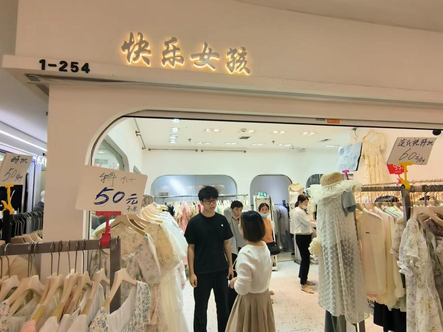 隨后在走訪的過(guò)程中發(fā)現(xiàn)了一家消費(fèi)群體為中老年女性的女裝店鋪,款式以經(jīng)典華貴為