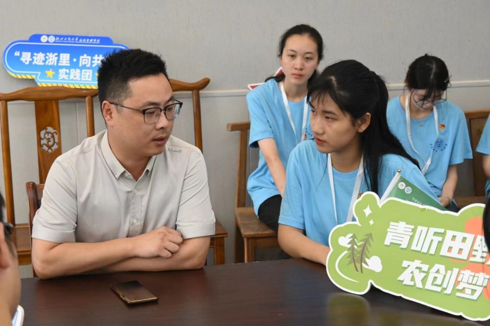 圖為實(shí)踐團(tuán)與“十佳”農(nóng)創(chuàng)客陳速超對話 嵇琦攝