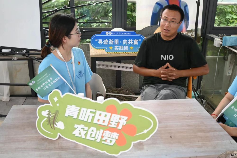 圖為實(shí)踐團(tuán)成員訪談“十佳農(nóng)創(chuàng)客”胡晶金 嵇琦攝