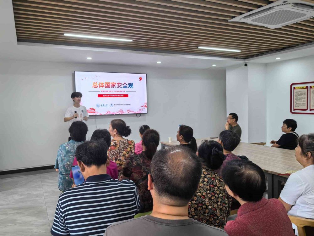 習(xí)近平總書記在2014年召開的中央國家安全委員會第一次會議中首次提出總體國家安全觀,闡述了總體國家安全觀的基本內(nèi)涵、指導(dǎo)思想和貫徹原則。近年來,在日常生活中危害國家安全的案件層出不窮,為全面貫徹習(xí)總書記的總體國家安全觀思想,引導(dǎo)和幫助大眾提升國家安全意識,重慶大學(xué)經(jīng)濟(jì)與工商管理學(xué)院“習(xí)語新聲”實(shí)踐團(tuán)隊于2024年7月6日再次前往重慶市渝中區(qū)民樂村社區(qū),圍繞“總體國家安全觀”開展宣講活動,展現(xiàn)了重慶大學(xué)學(xué)生們對維護(hù)新時期國家安全的時代擔(dān)當(dāng)。