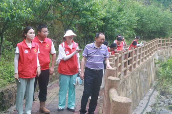雖然天氣并不晴朗,但成員們的熱情依舊高漲。黎支書一路相伴,他對這片土地的深情與自豪,在雨幕下更顯濃厚。他向實踐團成員們娓娓道來桃花洞的傳奇故事,那些關于黎發旺與桃花的忠貞愛情,以及井龍作祟、神兵天降的奇幻傳說,在雨聲的伴奏下,更添幾分神秘與感人。
