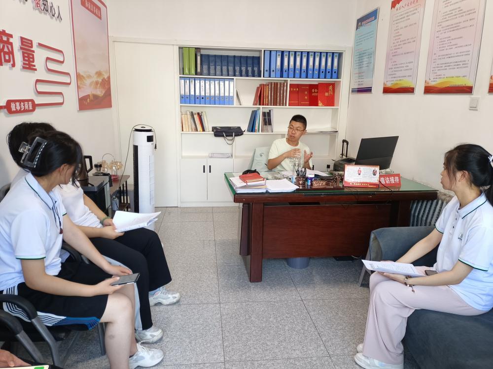 當天上午8:30,二隊實踐隊員與張書記召開工作探討會。會議上,張書記對我們前期的工作表示了肯定,并對同學們提出的口號作出改進建議,希望我們繼續精簡口號,凝練內容。之后,在團隊成員的咨詢下,張書記對“金星小區”現有管理理念的內容做出回答——“五有”,即有黨的組織、有活動陣地、有黨員信息臺賬、有聯系服務群眾機制、有應急動員預案。會議結束后,實踐隊員結合會議內容和張書記建議將“一心一領,五圈三面”的口號精簡為“治核四驅”,將內容凝練為“四個引領”,即思想引領,筑牢治理之魂;組織引領,強化治理之力;服務引領,細化治理之序;特色引領,優化治理之道。下午,實踐隊員隨東關社區工作人員參加了以“黨內反腐敗斗爭”為主題的黨建會議。會議中,實踐隊員領悟到了黨內反腐敗斗爭的重大意義。它不僅能保持黨的先進性和純潔性,還能增強黨的凝聚力和戰斗力,贏得人民的信任和支持。這為實踐隊員更好地參與東關社區的工作提供了新思路,使實踐隊員以更堅定的信念為社區發展貢獻力量,也為營造風清氣正的社區提供了思路。