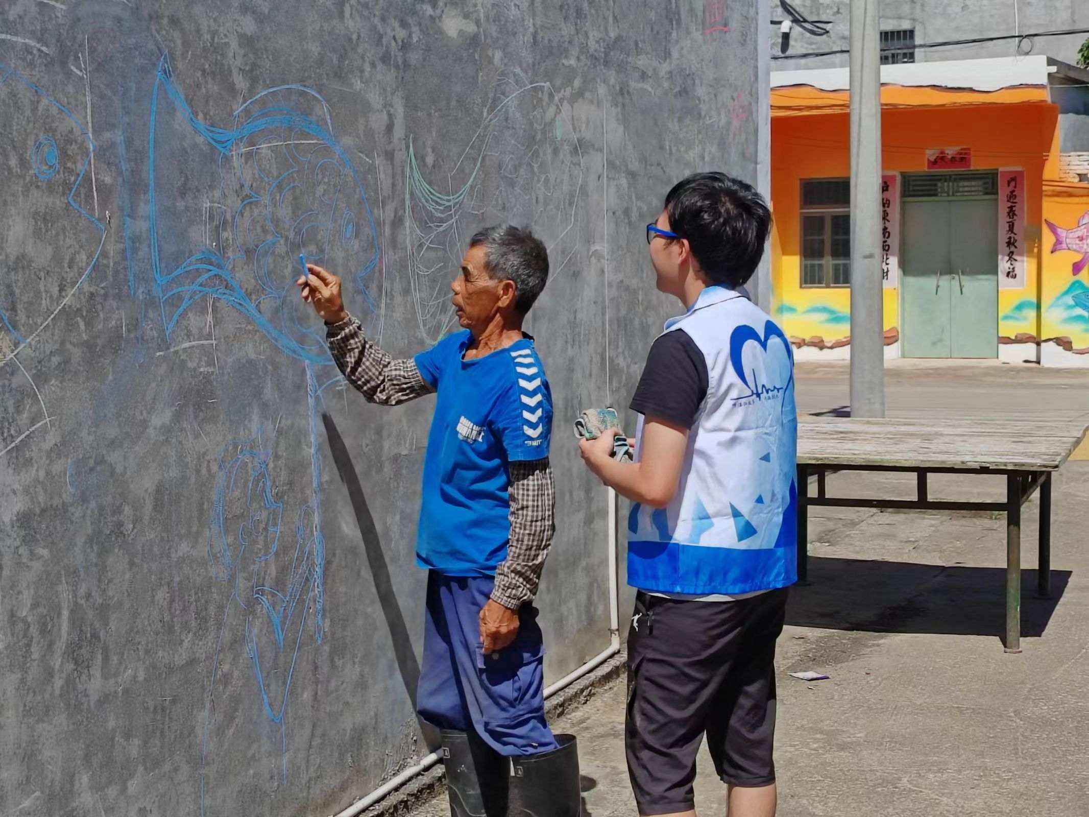 腳步丈量鄉村野徑,志愿揮灑青春汗水。尋港志愿服務隊如火如荼的三下鄉活動來到了第三天,今天隊員們繼續兵分兩路,第一隊完成游魚短劇的構思和拍攝,下午進行居民走訪和問卷調研,了解當地村民對游魚文化的認識程度;另一對根據當地政府的要求重新調整內容,繼續推進游魚墻繪。隊員們通過多彩多樣的形式為大家展示游魚非遺文化的魅力。