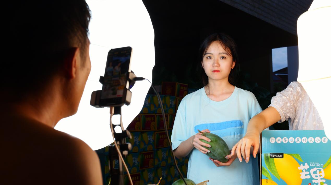 圖為直播組成員在進行直播助農(nóng)。黃晶 攝