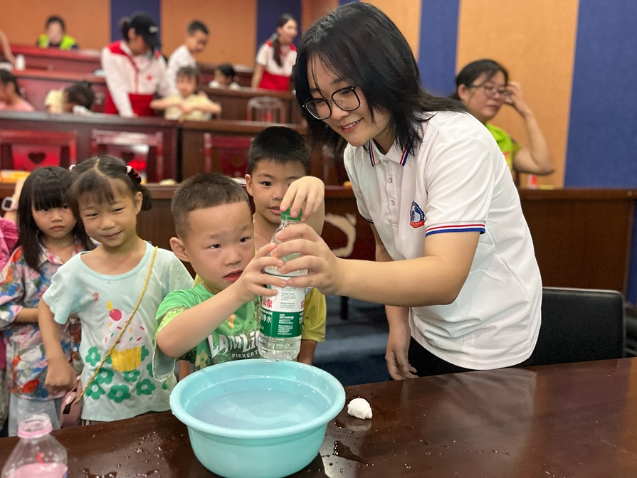 活動當天上午,負責人楊佳于以傳統農業和現代農業的不同之處為切入點,引出活動主題“新質生產力”,并指出其關鍵在于科技創新。本次活動以科技創新為引導,開展了多種科學小實驗,主持人通過一問一答調動了小朋友們思考的積極性,并用生動的語言向他們講解了實驗中蘊含的科學原理。隨后,在隊員們的帶領下,小朋友們進行了紙杯疊疊樂和你畫我猜小游戲,極大地培養了小朋友的想象力和相互之間的合作能力。