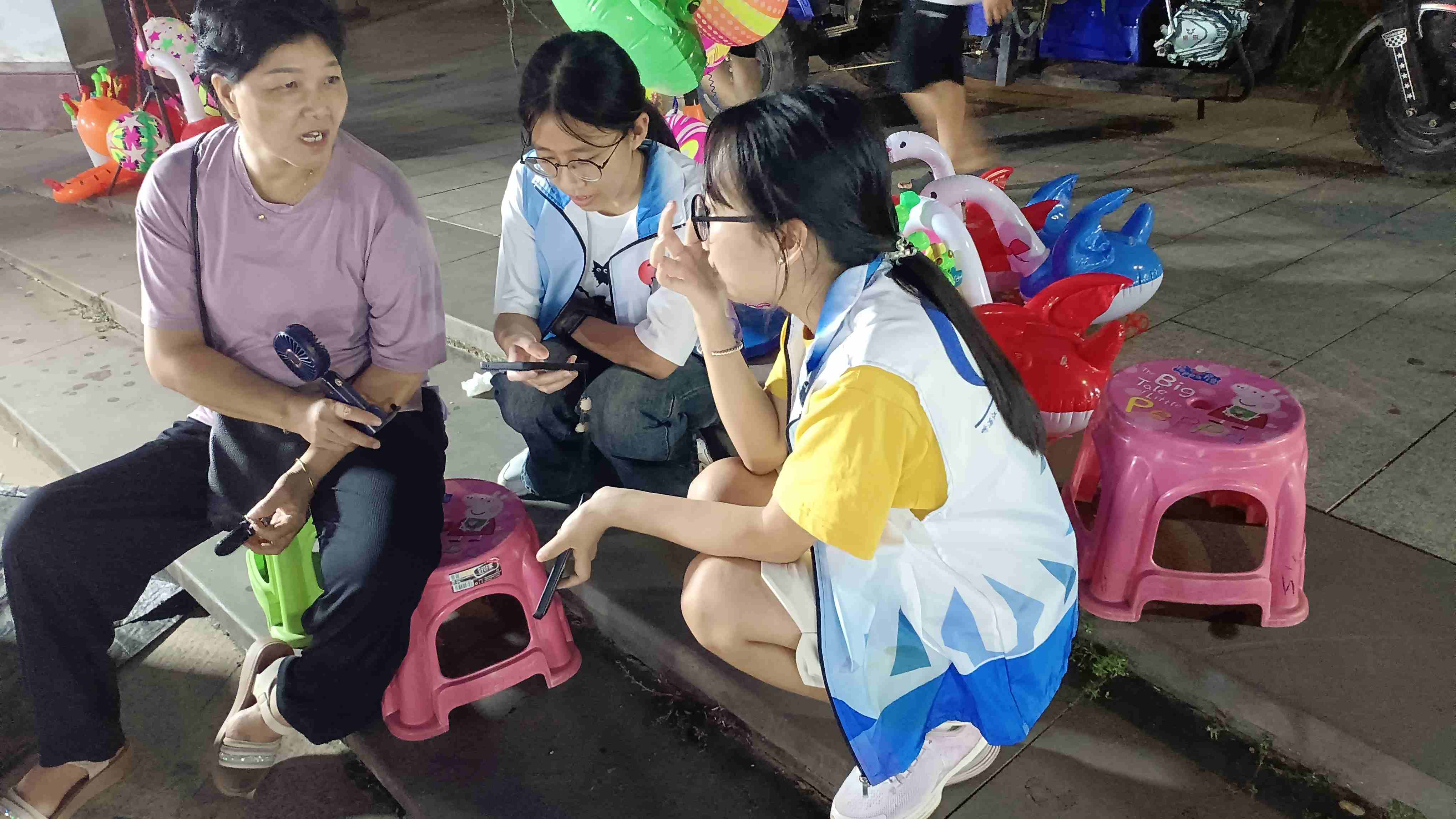 即使到了夜晚,隊員們也不放過人流量多的廣場進行走訪調查,耐心的當地百姓對于隊員們的問題都一一回復。