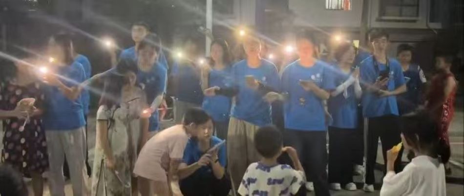 活動的最后,一曲動聽的歌聲響徹龍升社區,全體學生志愿者們一同呈現了一場歌曲表演,演唱曲目是改編版的《童年》,旨在提醒大家關注防溺水問題。全體志愿者們揮動手電筒,與觀眾一同合唱,用歌聲傳遞法治正能量,這首歌曲不僅展現了全體學生志愿者的團結與奉獻精神,更是一次對防溺水問題的重要宣傳和教育。通過歌曲中融入的警示和關愛,希望能喚起社會對溺水危險的警覺,共同呵護每一個生命的安全。