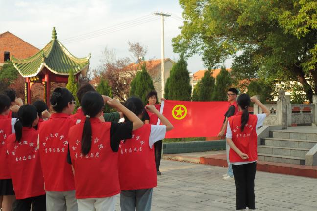 清掃完畢。志愿者們展開團旗,佩戴團徽,由青馬工程骨干班成員羅琳瑯同學領誓,全體志愿者整齊排列于碑前重溫入團誓詞,不忘初心,牢記使命。
