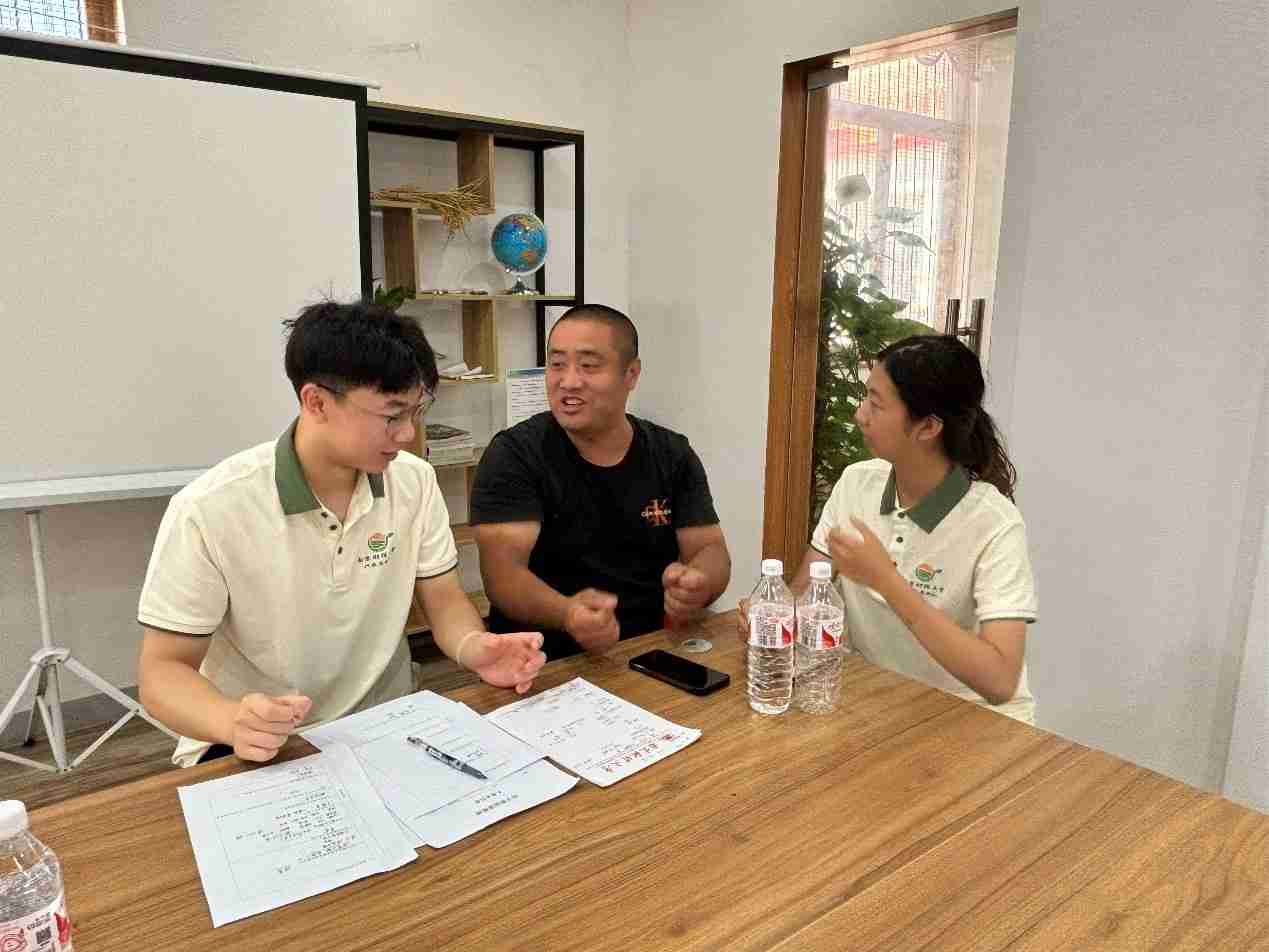 圖為實(shí)踐隊(duì)員與寨角村種糧大戶進(jìn)行訪談。通訊員 秦嘉悅 攝