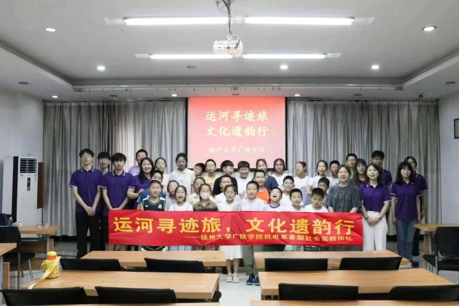 近日,揚州大學廣陵學院暑期三下鄉社會實踐團隊“運河尋遺跡,文化遺韻行”來到了江都仙女鎮北苑社區居委會,為暑托班的小朋友們帶來了一堂別開生面的運河文化課。