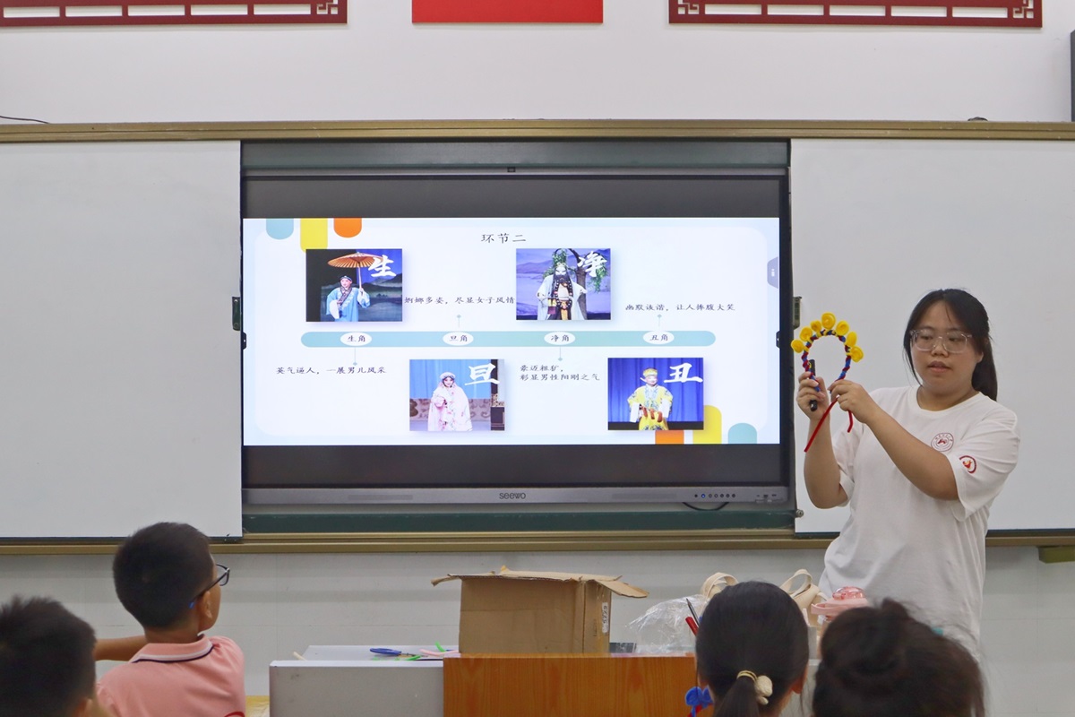 傳統文化主講人從京劇著手,向學生們科普了京劇發源地及具體行當。她表示,通過鑒賞《唱臉譜》、用扭扭棒手工制作京劇旦角發箍實踐活動,學生們領悟到了京劇之美,點燃了心中保護和繼承發揚傳統文化的星火。