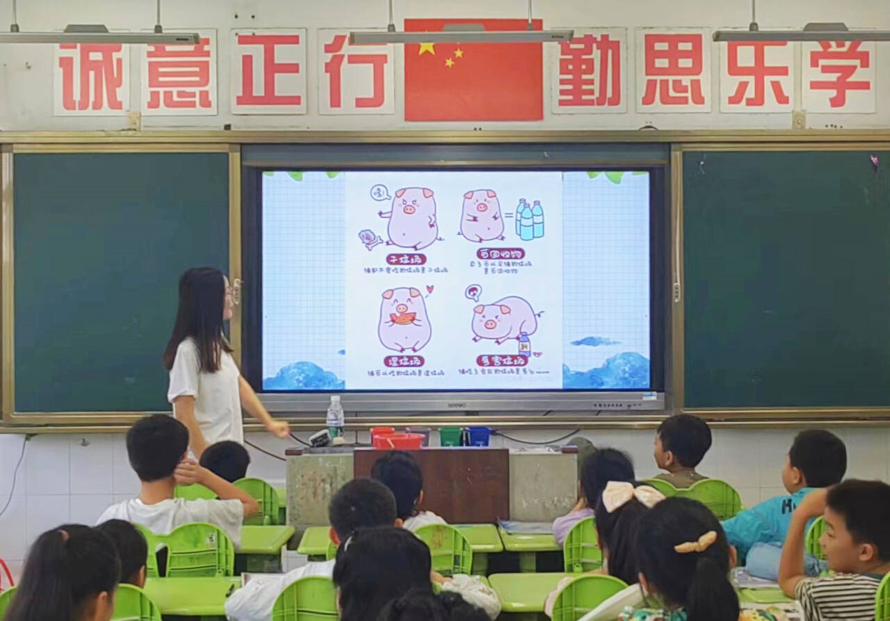 實踐隊員首先來到淮安市清浦小學進行宣講,向小學生們傳授垃圾分類的基本知識,引導他們從小養成垃圾分類的好習慣,并通過他們將環保理念傳遞給家庭和社會,形成“教育一個孩子,影響一個家庭,帶動整個社會”的良好氛圍。在課堂上,團隊小講師以通俗易懂的語言,結合生動有趣的動畫視頻以及實物展示,為孩子們講解了垃圾分類的種類、投放方法及重要意義,并通過互動問答,激發了孩子們的學習興趣和參與度。此外,小講師講授的“豬豬分類法”也深深地印在了孩子們的腦海里,讓孩子們對垃圾分類有了更深刻的了解。