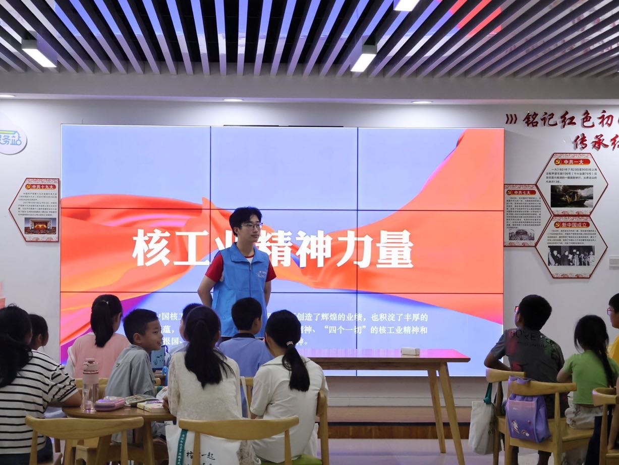 本網訊(安徽師范大學 葛嚴璐)2024年7月11日為讓兒童們提高對核知識的了解,增強國防安全意識,安徽師范大學化材學院赴蕪湖“ ‘核’夢初心,共鑄未來”本科生宣講社會實踐團隊與安徽省核科技館合作前往龍華社區進行了核力碳達峰,助力碳中和以及黨領導下的核工業發展歷程的宣講,同時和龍華社區聯合進行了國防教育。