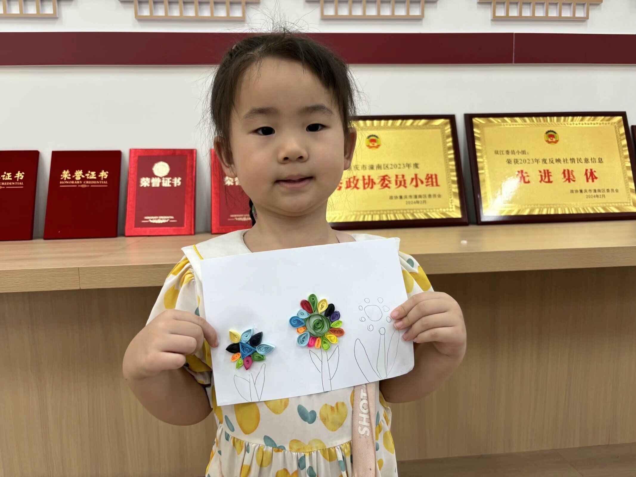 “知者創物,巧者述之守之,世謂之工。百工之事,皆圣人之作也。”創新是推動社會進步和發展的關鍵,而技藝的傳承則是保持文化連續性和穩定性的基礎。在當今社會,我們仍然需要像古代工匠一樣具有創新精神和技藝傳承意識的人才,來推動我們的社會不斷向前發展。實踐團成員們耐心指導孩子們學習衍紙畫制作技巧,從卷紙、捏形到粘貼組合,每一步都親力親為。在實踐團成員們的幫助下,孩子們創作出一幅幅精美的衍紙畫作品,不僅鍛煉了動手能力,還培養了審美情趣和藝術創造力。