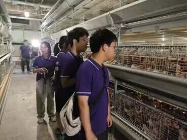 興化市榮鑫畜禽養殖家庭農場,成立于2014年12月5日,位于江蘇省泰州市,是一家以從事畜牧業為主的企業。為進一步了解當地家禽養殖的情況,團隊成員在朱廠長的帶領下參觀了蛋雞舍,了解了蛋雞養殖的流程。同時,朱廠長也介紹道:“近幾年隨著科技的發展,有許多新興的技術也被引入到蛋雞養殖中,例如溫度監控系統、自動飼養系統等等,這類技術大大提高了雞蛋產量并減少了人力。”從廠長神采奕奕的臉上可以看出豐收的喜悅,這使團隊更加意識到科技興國的重要性。