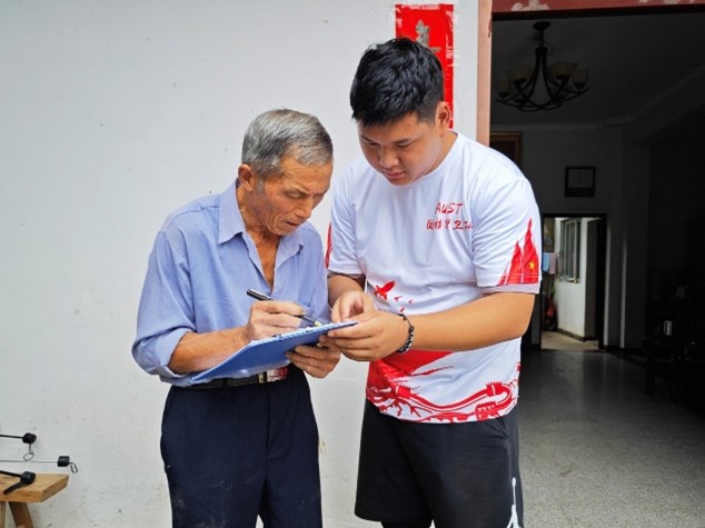 圖為星火團成員向學生家長了解學生日常狀態 胡振繽 攝