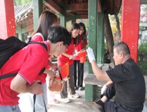 團隊成員采取走訪的形式,對公園內了解紅旗渠事跡的部分群眾進行了針對性地采訪。通過采訪,隊員們對紅旗渠修建之艱難擁有更加深刻地認識。由于林縣極其匱乏水源,導致林縣人民的日常生活極為不便。終于,在黨的正確指導下,在林縣縣委的指揮下,林縣人民開始了紅旗渠工程的動工。由于人手不足,不僅青年上陣,婦女、老人也需前去支援,全林縣人民眾志成城、萬眾一心,十年寒冬酷暑,才造就了如今全長1500公里、被稱為第八大奇跡的紅旗渠。紅旗渠的壯麗背后承載著意想不到的艱辛。