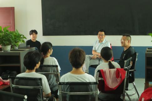 交流座談,共話未來。日暮時分,各位領導來到武穴市大法寺鎮翟畈小學慰問“七彩假期”暑期社會實踐支教團隊。各位領導來到學校召開座談會,與團隊指導老師和翟畈小學領導老師進行深入交流學習,對各位志愿者進行了親切的問候,了解志愿者們的生活狀況及工作情況,詢問志愿者們在志愿服務中的困惑并為我們提供解決辦法,還為我們送來解暑暖心物資。領導們對志愿者團隊克服困難、堅守崗位的精神給予了高度評價,并鼓勵他們繼續發揚奉獻精神,為鄉村教育貢獻自己的力量。