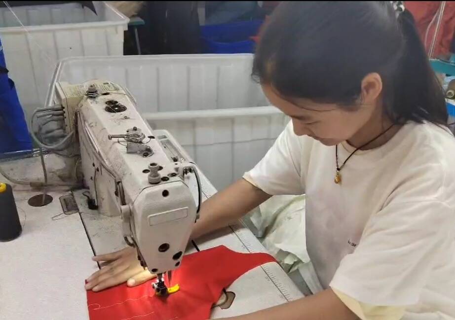 實(shí)踐團(tuán)成員先后參觀制衣廠的生產(chǎn)線,深入了解企業(yè)廢舊布料到纖維、纖維再到服裝的“閉環(huán)”良性循環(huán)再生過(guò)程。實(shí)踐團(tuán)成員走上車(chē)間操作臺(tái),學(xué)習(xí)操作剪毛機(jī)、破碎機(jī)等設(shè)備,將廢舊布料進(jìn)行粉碎、剪斷、打成薄片為后道工序再生成纖、再造面料做準(zhǔn)備。實(shí)踐團(tuán)成員結(jié)合自身專業(yè)優(yōu)勢(shì)利用再造面料裁剪、縫合,制作毛絨玩具等“新”產(chǎn)品,將理論知識(shí)與產(chǎn)品制作緊密結(jié)合,體驗(yàn)沉浸式勞動(dòng)實(shí)踐課堂。