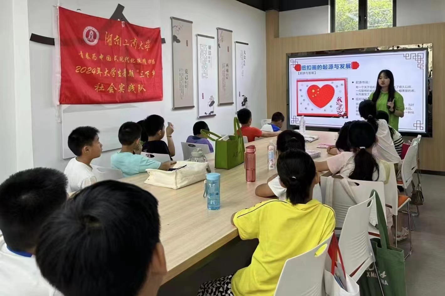 為深入理解黨的二十大精神“教育是國(guó)之大計(jì),黨之大計(jì)”,加快推進(jìn)新時(shí)代人才的培育進(jìn)程。由湖南工商大學(xué)微電子與物理學(xué)院“青春翼站在長(zhǎng)龍”支教團(tuán)隊(duì)與長(zhǎng)界社區(qū)合作的“科技教育共助力,賦能長(zhǎng)龍振興夢(mèng)”社會(huì)實(shí)踐活動(dòng)在長(zhǎng)沙市長(zhǎng)界社區(qū)舉辦。7月11日,支教團(tuán)隊(duì)開展了以“創(chuàng)造力綻放:紐扣畫工坊”為主題的愛國(guó)主義手工制作活動(dòng),發(fā)揮支教作用,致力于為留守兒童送去關(guān)愛,呵護(hù)留守兒童健康成長(zhǎng)。
