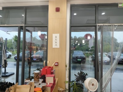 踏入九華山特產超市,首先映入眼簾的便是精致典雅、琳瑯滿目的展柜,柜臺色調溫暖,似乎隔開了門外的密雨,自成一方秘境,柜上排排擺放著茶藝師朱文君的個人收藏品,草木、石獸、瓷器、玉石……不似尋常的超市,倒有點像一個小文創店了。墻上還懸掛著幾幅書法,給這個超市增添了別樣的典雅氛圍。