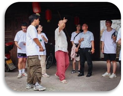 抵達(dá)梅渚村后,實踐隊迅速融入這片古樸而充滿生機(jī)的土地。當(dāng)日下午,隊員們深入村落,細(xì)致考察村子的布局與風(fēng)貌,每一處古老的建筑、每一條蜿蜒的小徑都成為了他們了解鄉(xiāng)村文化的窗口。隨后,在泥塑匠人劉天朋的引領(lǐng)下,隊員們聆聽了一場關(guān)于工坊泥塑的精神內(nèi)涵,并帶領(lǐng)隊員們參觀梅渚村的非遺建筑。