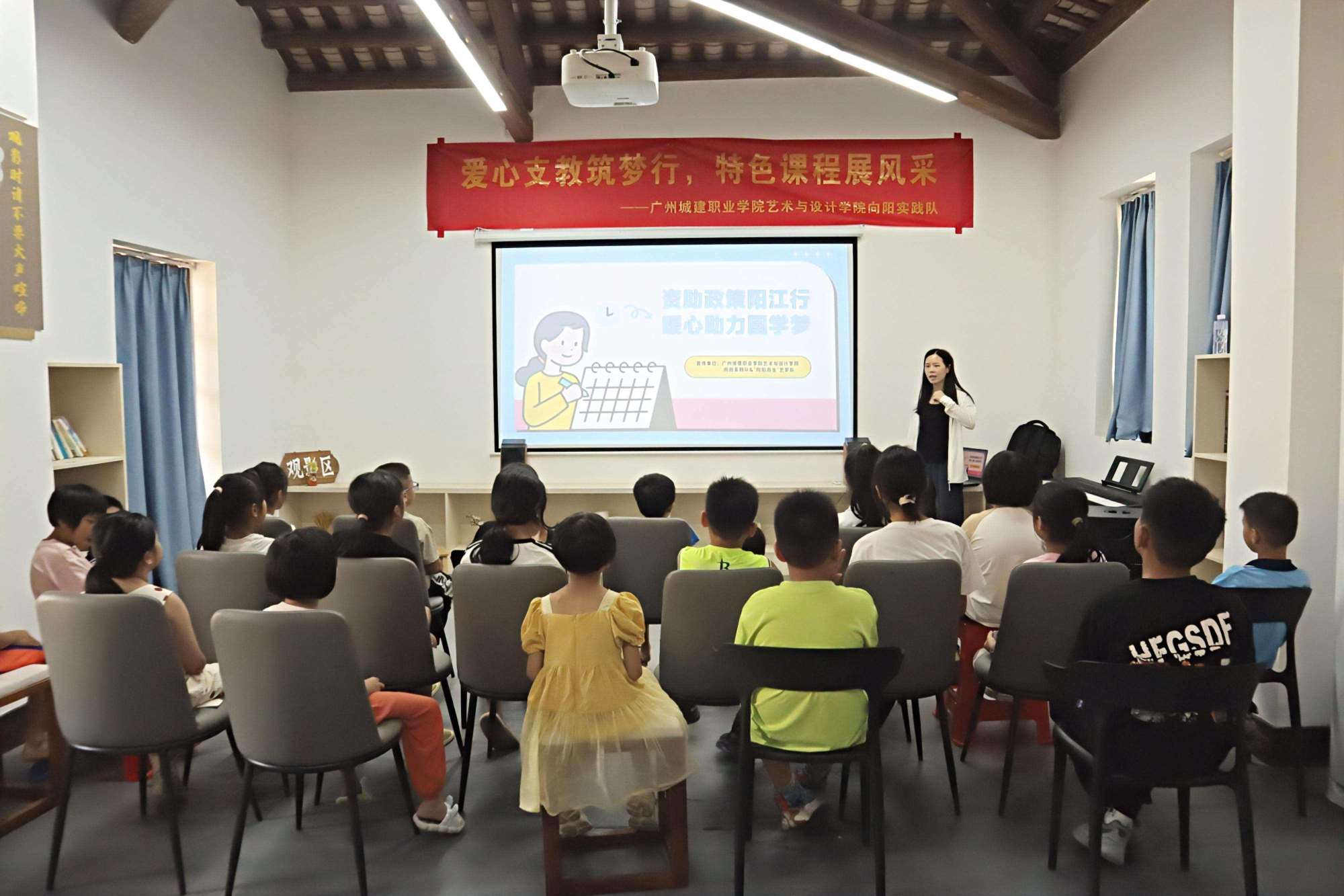 為深入學習貫徹習近平新時代中國特色社會主義思想和黨的二十大精神,引導青年大學生將課堂學習與社會實踐緊密結合起來,用青春力量賦能鄉村振興,豐富實踐地留守兒童暑期生活,7月10日-7月12日,廣州城建職業學院藝術與設計學院向陽實踐隊聯合大八鎮政府開展了為期三天的暑期公益課堂活動。此次公益課程內容豐富,課程設置堅持教育性、知識性、趣味性相結合,開設了繪畫、唱歌、舞蹈等特色課程。