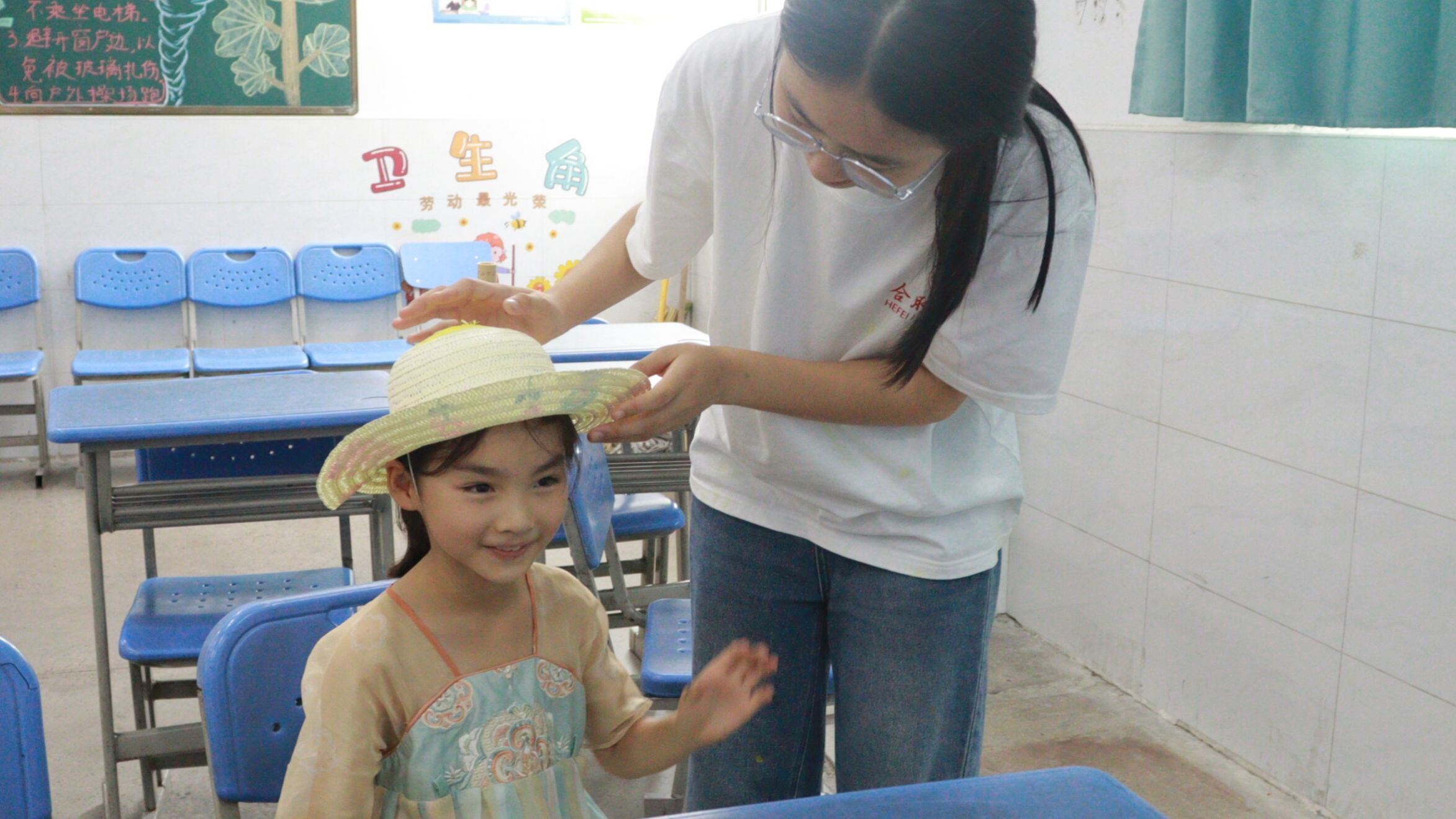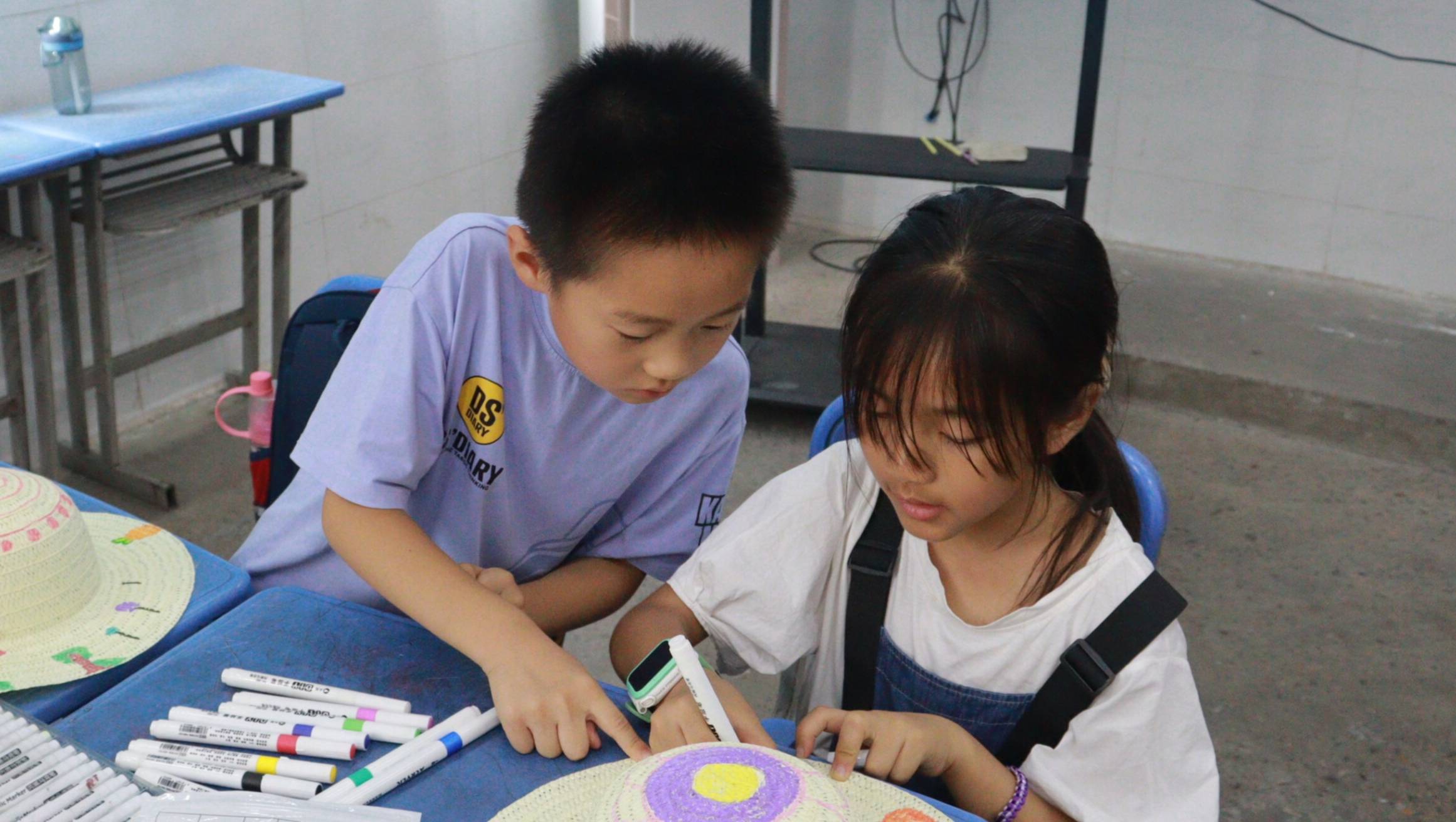2024年7月6日,合肥大學教育學院“同筑鄉村夢,共‘育’振興果”志愿服務隊在合肥市小廟鎮蜀山行知學校開展了暑期“三下鄉”社會實踐活動。美育是審美教學與美感教學的結合,是新時代培養德智體美勞全面發展的社會主義建設者和接班人的重要著力點,其中藝術是美育最集中最典型的形態。本次課程,教師魯丹妮以美育作為切入點給小朋友們帶來了一節妙趣橫生的草帽繪制藝術。
