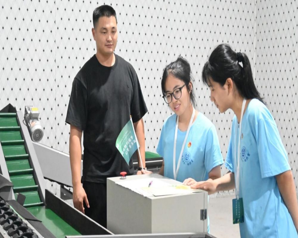 公共管理學院“‘青’耘慈溪,‘春’耕有我”實踐支隊操作蜜梨篩選機器
