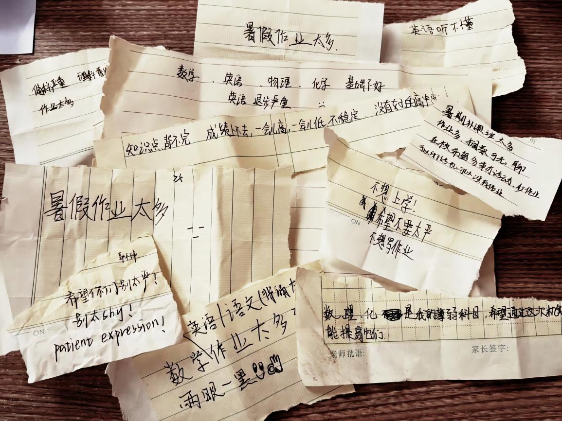 七月的河南炎熱無比,而當清晨的陽光透過窗戶,總能映照出孩子們認真聽講的臉龐。數學課上,老師站在講臺上幫助孩子們復習知識點,通過生動有趣的教學方式,為他們提供新穎的解題思路,激發他們對數學的興趣和思考能力。 “教育是一棵樹搖動另一棵樹,一朵云推動另一朵云,一個靈魂喚醒另一個靈魂。”這是支教團中負責數學課的趙老師深信的一句話。