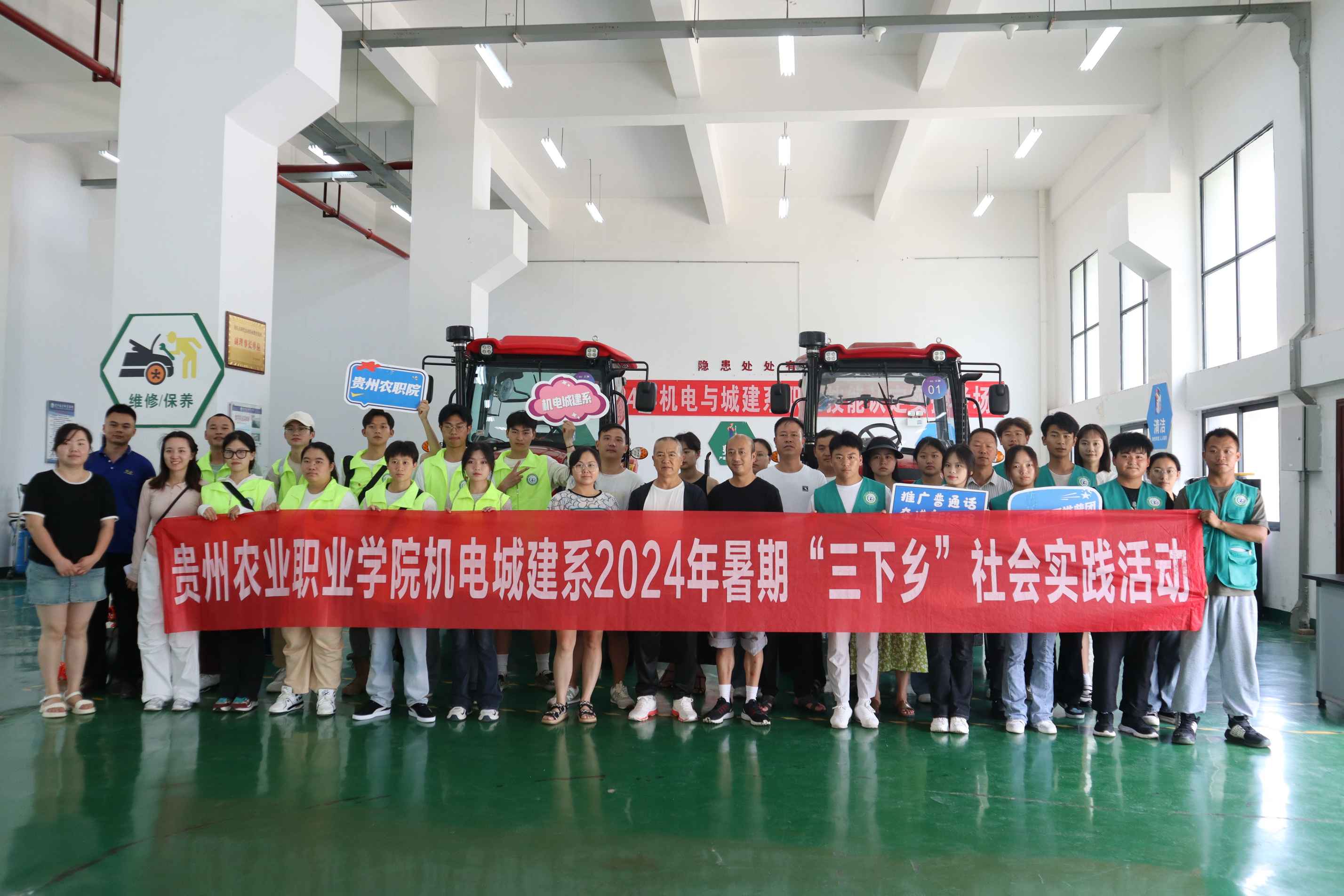 為促進農業科技與社區生活融合,通過機械強農助力鄉村振興,“黔語千尋”暑期社會實踐團于2024年7月16日邀請二十余名清鎮市濱湖街道鄉愁社區居民前往貴州農業職業學院機電與城建系實訓室進行農用機械參觀,以此搭建農職院與鄉愁社區的溝通交流橋梁,共同探索智慧農業發展新路徑。