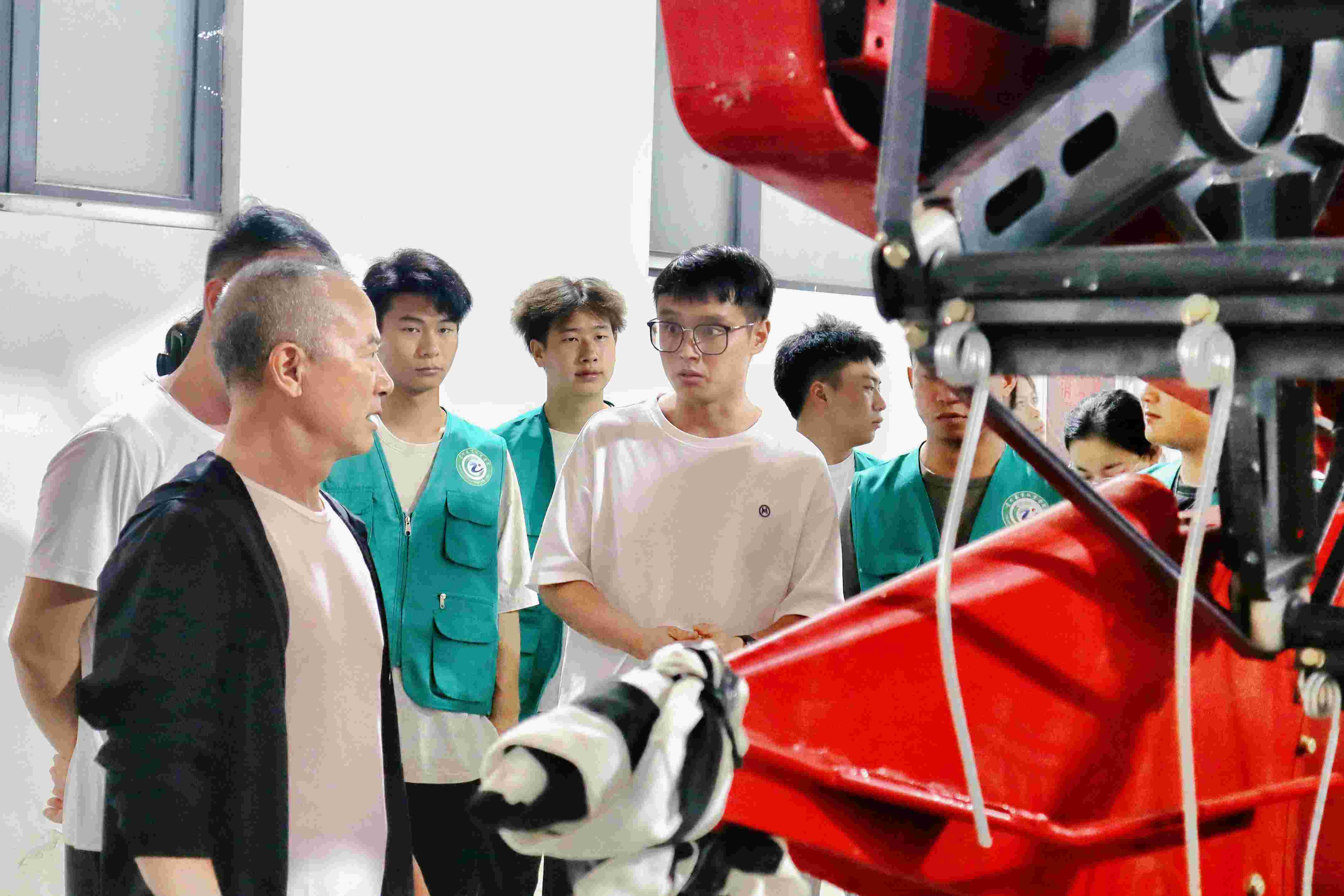 隨后,由曾獲“全國技術能手”稱號的教師王輝帶領社區居民參觀機電與城建系設備機房。王輝老師運用專業知識深入淺出地為參觀人員介紹了由機電與城建系自主研發的多種農用機械,如山地植保農藥噴灑車、多功能山地車、智能跟隨車等,讓社區居民對現代農用裝備有了更加深入的了解。在觀摩學習之后,家中仍保有田地的鄭大哥不禁感嘆:“如今農業科技的發展真是日新月異,農民的生活也越過越好了!”