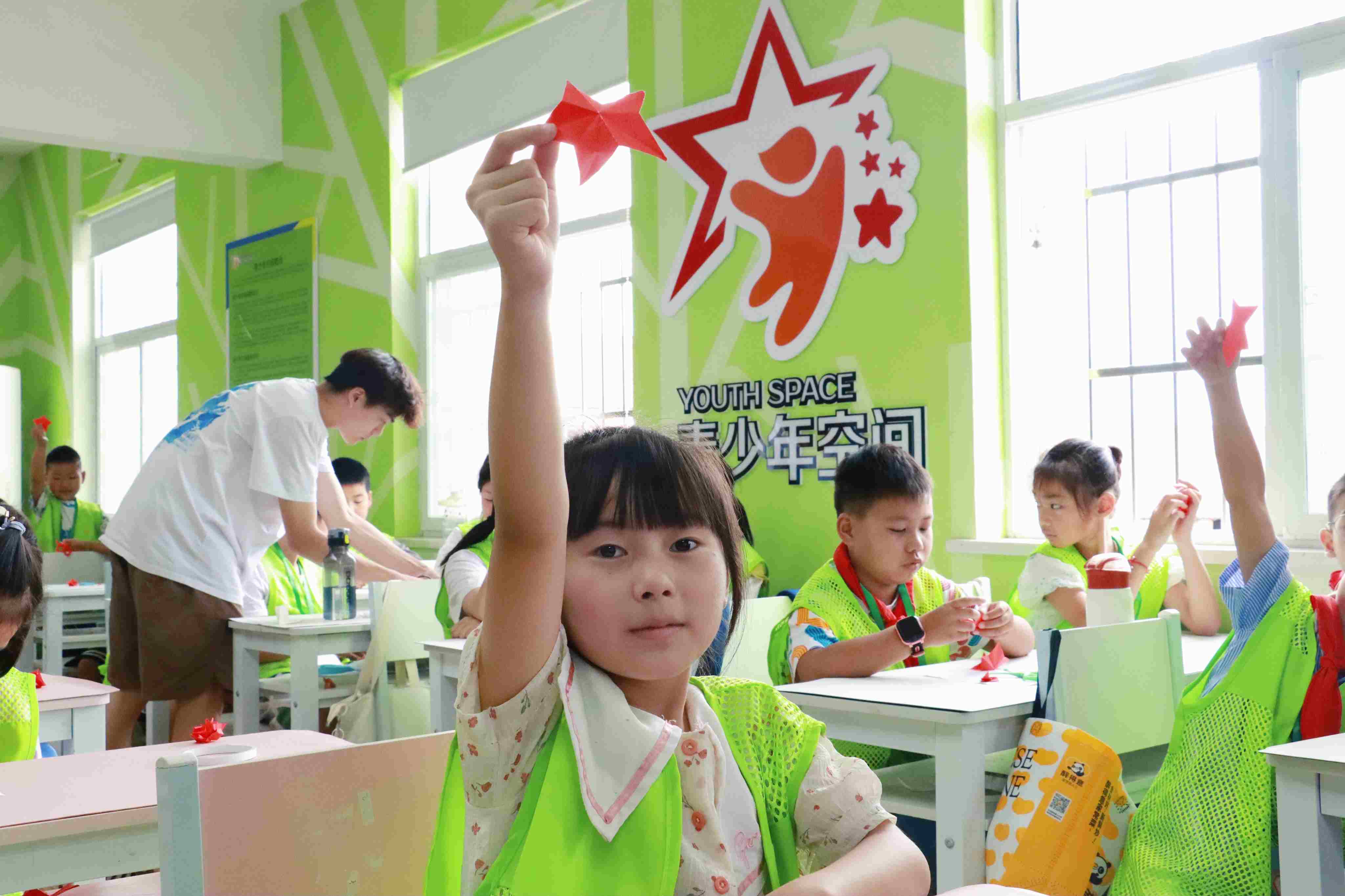 最后,同學(xué)們將一張張紅色卡紙折疊成一顆顆鮮紅的五角星,并在上面寫下自己的愿望和對(duì)國(guó)家的祝福,在動(dòng)手實(shí)踐中感受祖國(guó)的魅力。