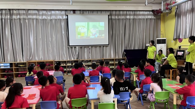 圖為隊(duì)員司心宇在互動(dòng)問(wèn)答環(huán)節(jié)提問(wèn)小朋友。通訊員 左子君 供圖