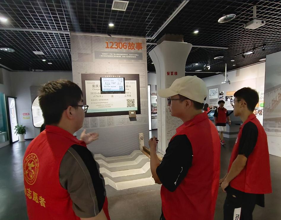 在進入展館后,實踐隊員通過246余幅珍貴圖文資料和60余件套實物展品認識到鄭渝高鐵巫山段建設背后的汗水與智慧,見證了巫山攜夢鐵路披荊斬棘的征程。