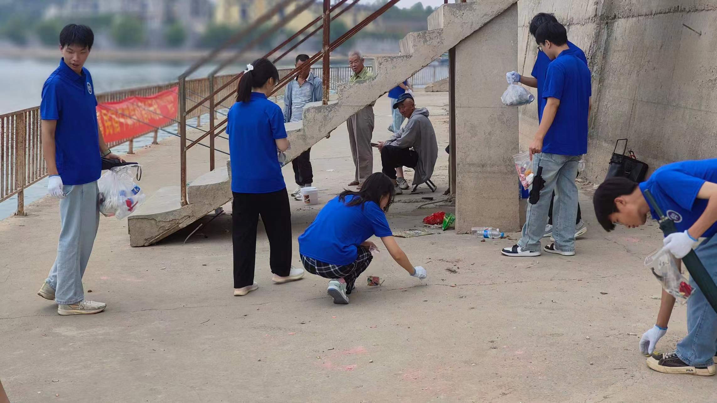 見“圾”行事,譜寫陸渾凈灘。講座結束之后,在王申奧、王藝佳同學的帶領下,團隊開展凈灘活動,隨著活動的進行,團隊成員們忙碌在各個角落,一部分成員教導當地居民講述垃圾分類標準與環保意識,一部分成員戴上手套,拿著鏟子垃圾,活動的最后,陸渾湖岸邊垃圾明顯減少。