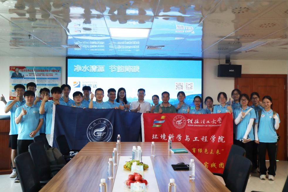 圖為桂潤環(huán)境科技有限公司工作人員與實踐團成員活動合影